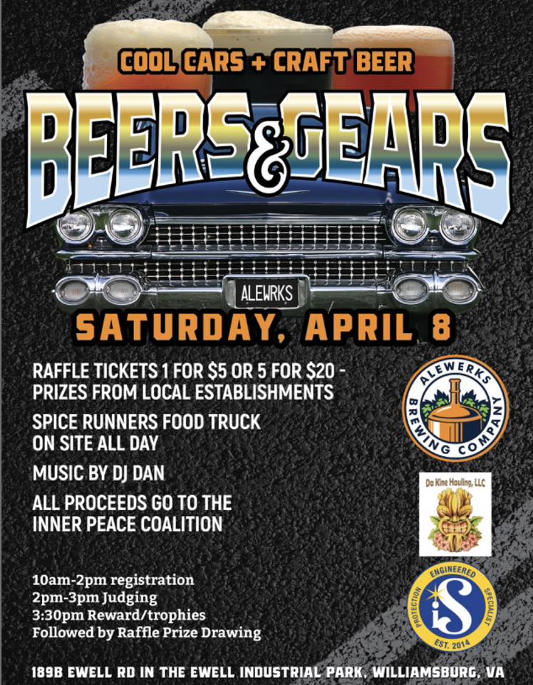 The Annual Beers and Gears Car Show is Back. $20 registration fee before the show and $25 day of show. All proceeds donated to Inner Peace Coalition who provide services and support that help COMMUNITIES improve, economically, socially and physically. We have five awesome Categories:
