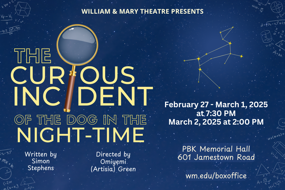William & Mary Theatre is pleased to announce its production of The Curious Incident of the Dog in the Night-Time, written by Simon Stephens and directed by Omiyemi (Artisia) Green.