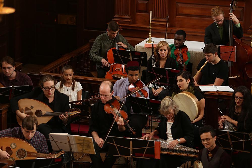 The Middle Eastern Music Ensemble, led by director Professor Anne Rasmussen, is comprised of W&M students, faculty, and community musicians that explore the styles and repertoires of Arab, Turkish, Persian, Armenian, and Greek musical traditions.