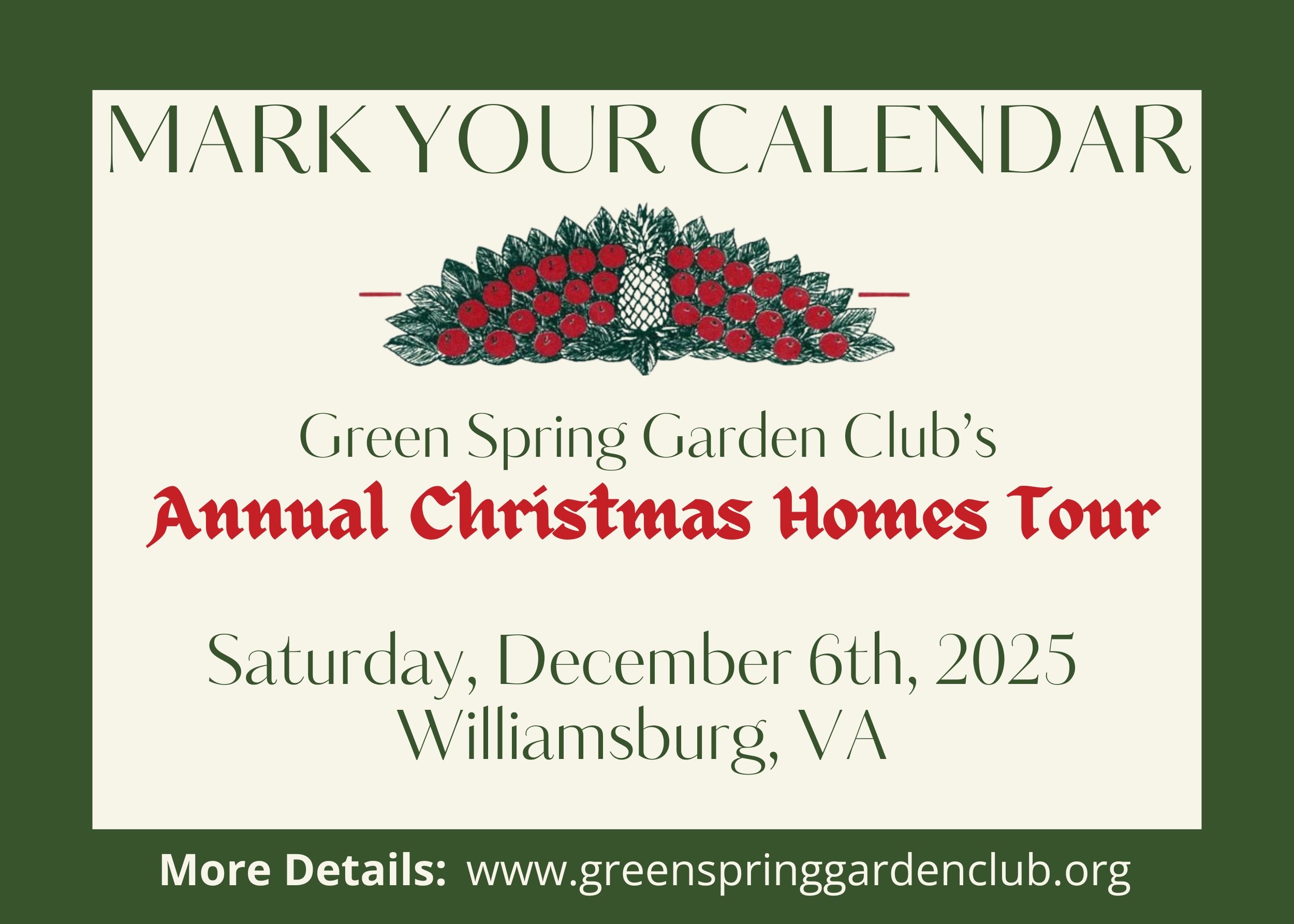 Enjoy this Tour of 4 homes in the Colonial Williamsburg Historic Area decorated for the holidays in late 18th century style by Green Spring Garden Club, Inc. and select local...