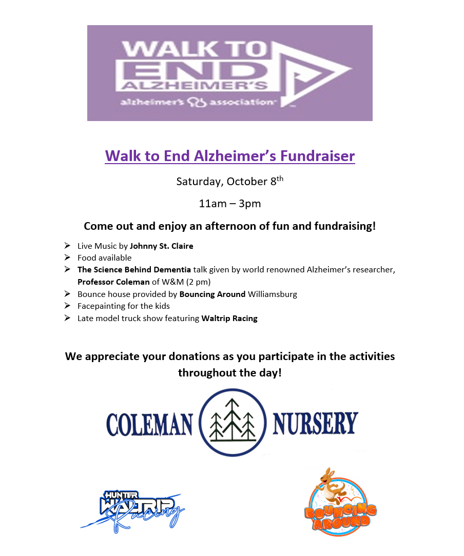 Coleman Nursery’s Walk to End Alzheimer’s Fundraiser