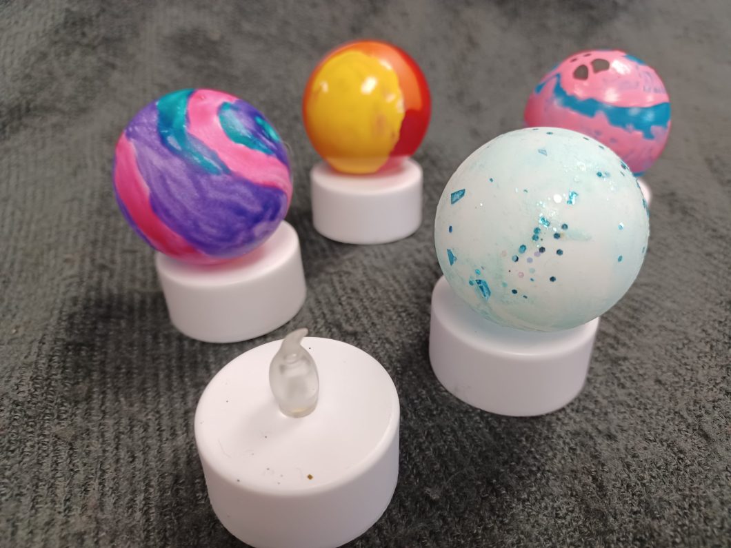 Transform a ping pong ball into a glowing planet with a battery-operated tea light, paint, and your imagination. Recommended for ages 7-12.