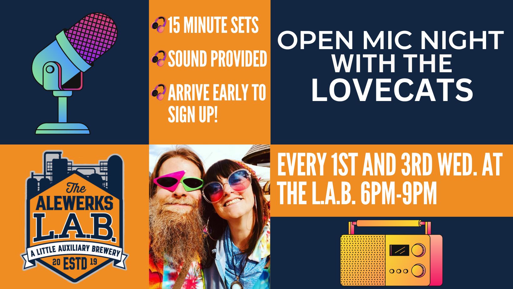 Check out Open Mic Night at the L.A.B. Wednesday night with the Lovecats. It's free to participate, and free to watch! If you're looking to perform, be sure to show up early so you can sign up. Performers are given 15 minute sets and sound is provided. Open Mic Night is about exploring new music,...
