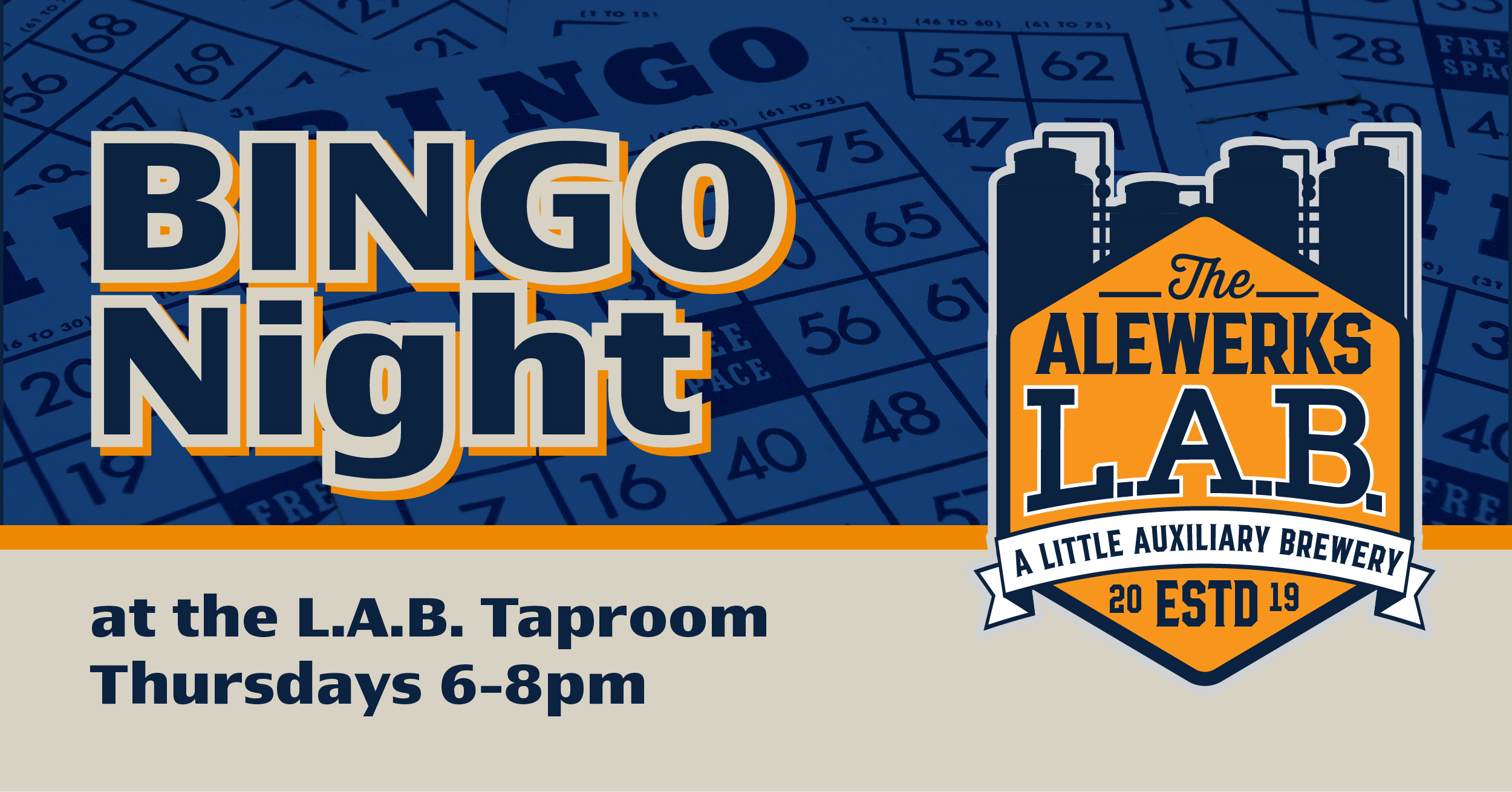 Looking for something fun to do? Head to the L.A.B. for BINGO! It’s free to play, family-friendly, and packed with good vibes. Gather your friends, sip on your favorite Alewerks brews, and test your luck for a chance to win awesome prizes. Plus, there’s pizza now, so you can fuel your game night with some...
